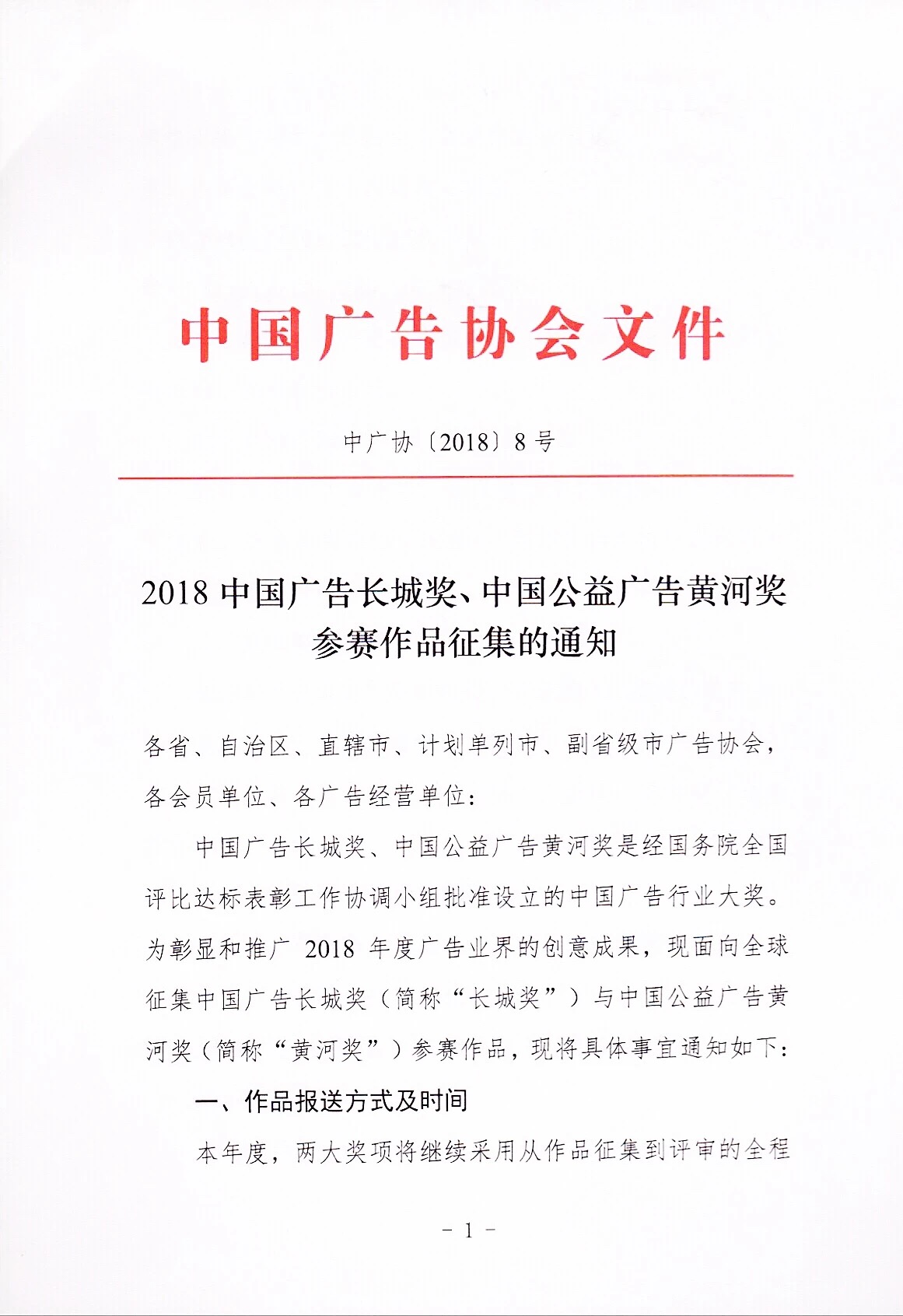 為彰顯和推廣2018年度廣告業(yè)界的創(chuàng)意成果,中國廣告協會現面向全球征集中國廣告長城獎(簡稱“長城獎”)與中國公益廣告黃河獎(簡稱“黃河獎”參賽作品。)